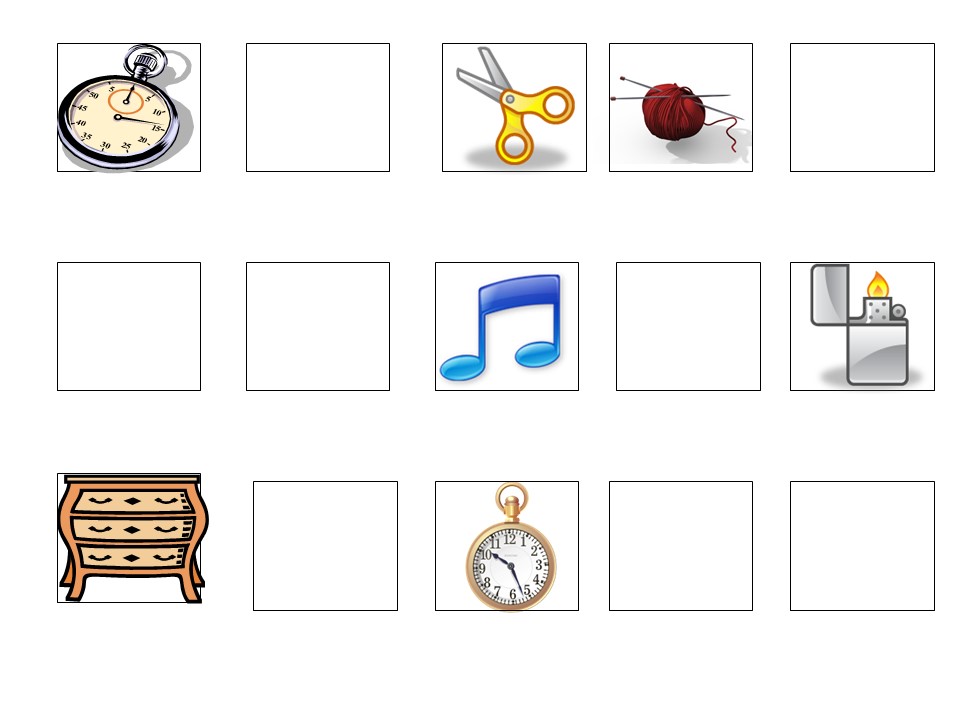 Material: instruments musicals, CD, gravacions amb sons d’animals o sorolls d’objectes quotidians (rellotge, porta que s’obre o tanca, etc.), sons de la natura (trons, pluja…), sintonies de programes de televisió o d’anuncis, vídeos musicals, sintonies del mòbil, etc.