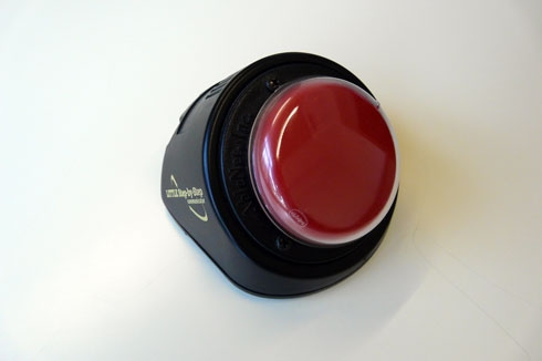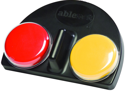b) Comunicador senzill de dos missatges: aquest comunicador permet gravar dos missatges i està indicat per a usuaris que s’estan iniciant en la comunicació i per començar a treballar activitats de causa efecte o d’elecció entre dues opcions possibles. A la figura trobareu una fotografia d’un comunicador Italk2, un exemple de comunicador senzill de dos missatges que permet la gravació i la reproducció de dos missatges.