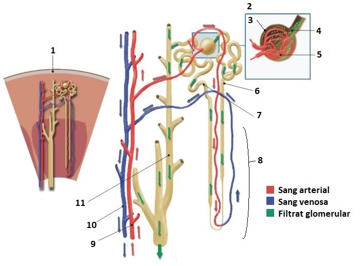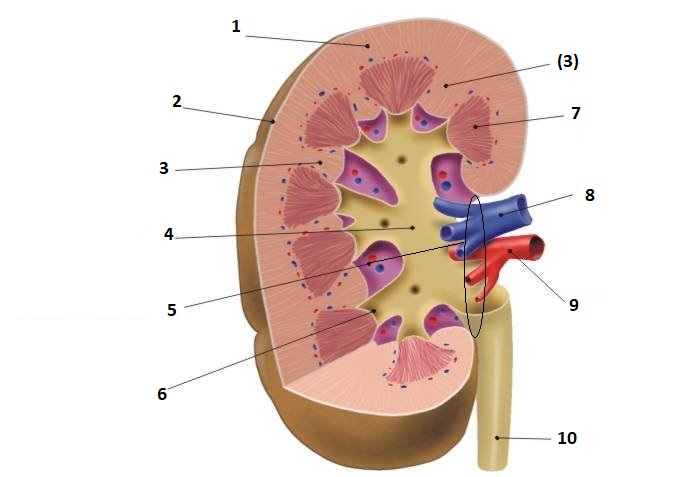 Identifiqueu les estructures del ronyó que teniu assenyalades a la imatge.