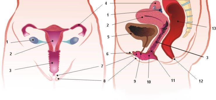 Identifiqueu les estructures de l’aparell reproductor femení que teniu assenyalades en la següent imatge: