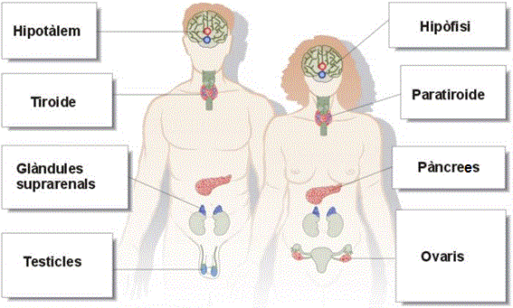 El sistema endocrí és l’encarregat, juntament amb el sistema nerviós, de la coordinació de les cèl·lules del nostre organisme. Això s’aconsegueix mitjançant l’alliberament d’unes hormones segregades per les glàndules endocrines. El sistema endocrí està compost per una sèrie de glàndules de secreció interna que produeixen i, com a resposta als estímuls provinents del sistema nerviós, aboquen o segreguen aquestes hormones a la sang.