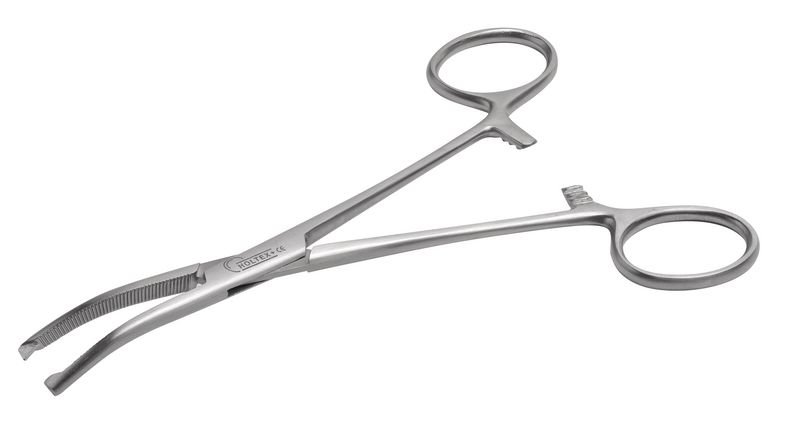 | Pinces de Kocher | Pinces amb puntes afilades en els seus extrems i dents de serra transversals en tota la seva longitud. Es fan servir per subjectar teixits durant la intervenció o per comprimir un teixit hemorràgic. | ![]() | |