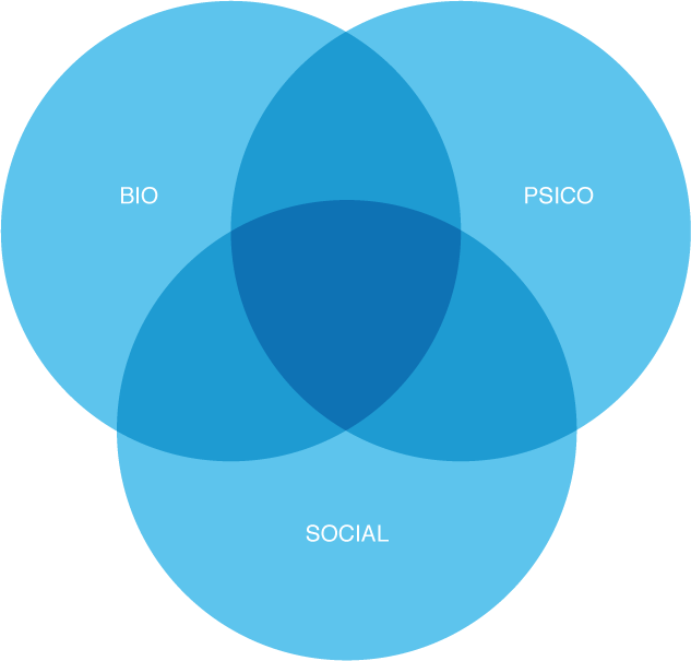 L’Organització Mundial de la Salut (OMS), per definir el concepte de salut, no només pren en consideració el benestar físic, sinó també el psicològic i el social com els factors que cal tenir en compte per determinar un bon estat de salut. Els professionals de l’àmbit sociosanitari, des del model biopsicosocial, prenen com a eix vertebrador en la realització de la seva tasca la consideració que una persona presenta unes necessitats no només físiques sinó també psicològiques i socials que han de ser satisfetes perquè tingui un benestar ple. Així, aspectes com les relacions interpersonals o el treball de les emocions han ocupat un lloc important en les planificacions socioeducatives, atesa l’evidència de la seva influència en l’estat de salut de les persones. Ho veiem representat en la figura: