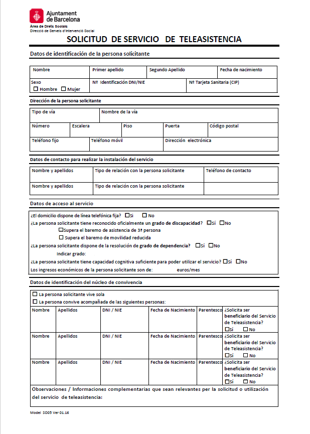 La sol·licitud del servei públic de teleassistència es gestiona a través dels Serveis Socials de l’Ajuntament. El poden sol·licitar totes les persones que reuneixin els requisits següents: