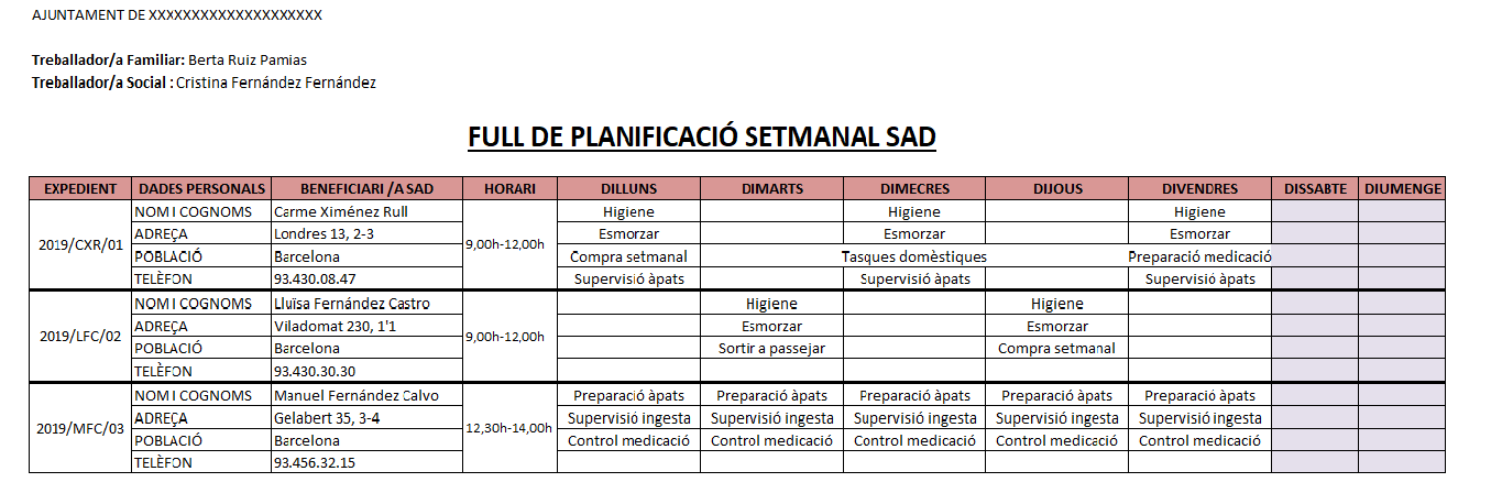 - Nom i cognoms del treballador familiar assignat al domicili.