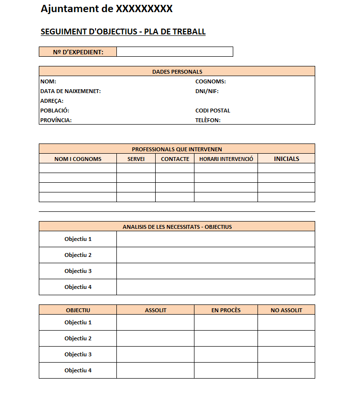 - Fulls per a la planificació de la tasca dels professionals.