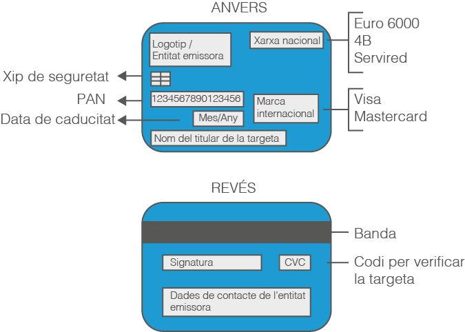 Hi ha diversos tipus de targetes bancàries (vegeu la figura):