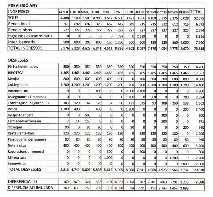 Interpretació de la informació recollida a partir de la gestió econòmica realitzada