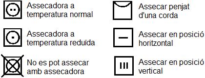 Els símbols que es fan servir a les etiquetes, relatius a l’assecat, es poden veure en la figura figura.