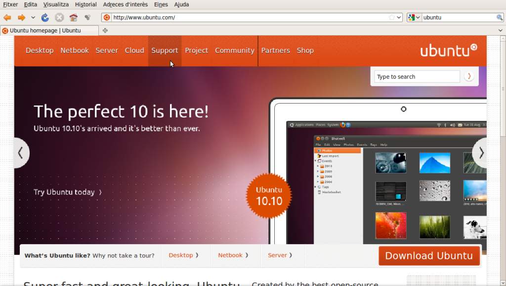 Si busquem Ubuntu en un cercador, amb molta facilitat arribarem a: www.ubuntu.com. En teniu una mostra de la pàgina web en la figura.