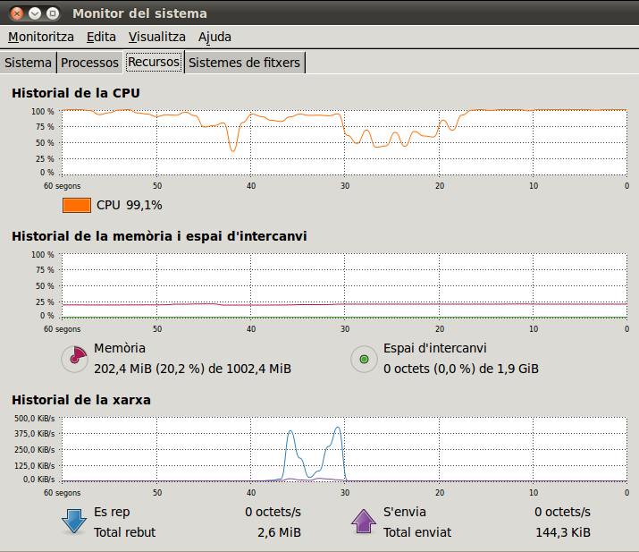 - El tant per cert d’ocupació de processador que està utilitzant.