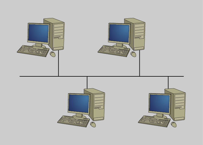 - Xarxa en bus (figura) és una topologia de xarxa en què els nodes comparteixen el medi i/o un dispositiu multipunt i que generalment utilitzen la tecnologia de difusió.
