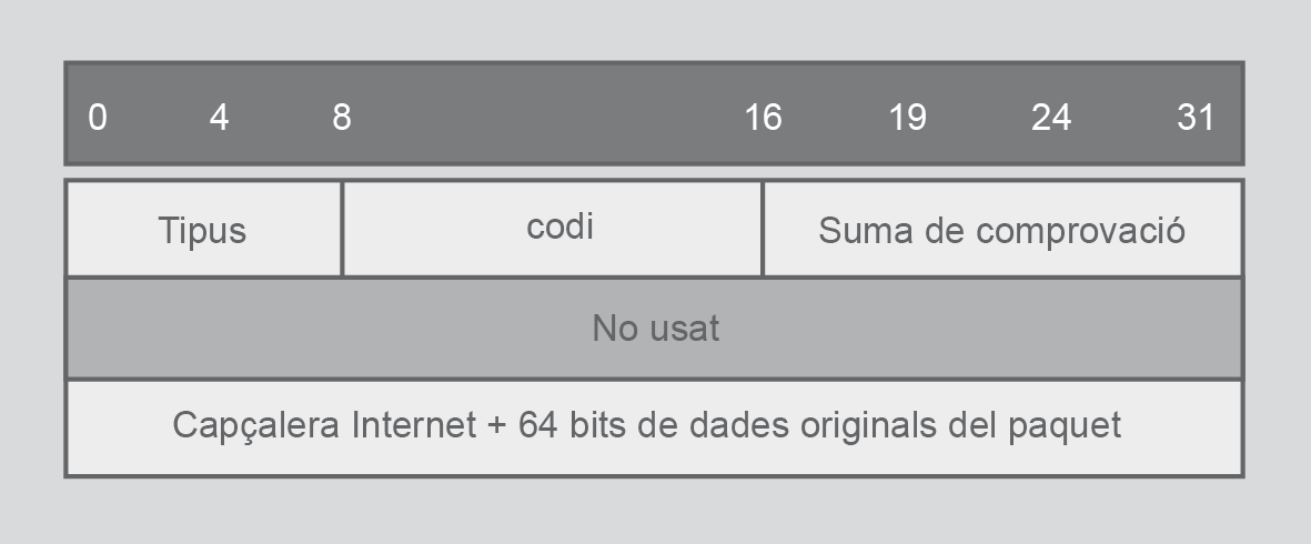 - Time exceeded (temps de vida excedit). Quan un encaminador es troba un paquet IP amb el camp