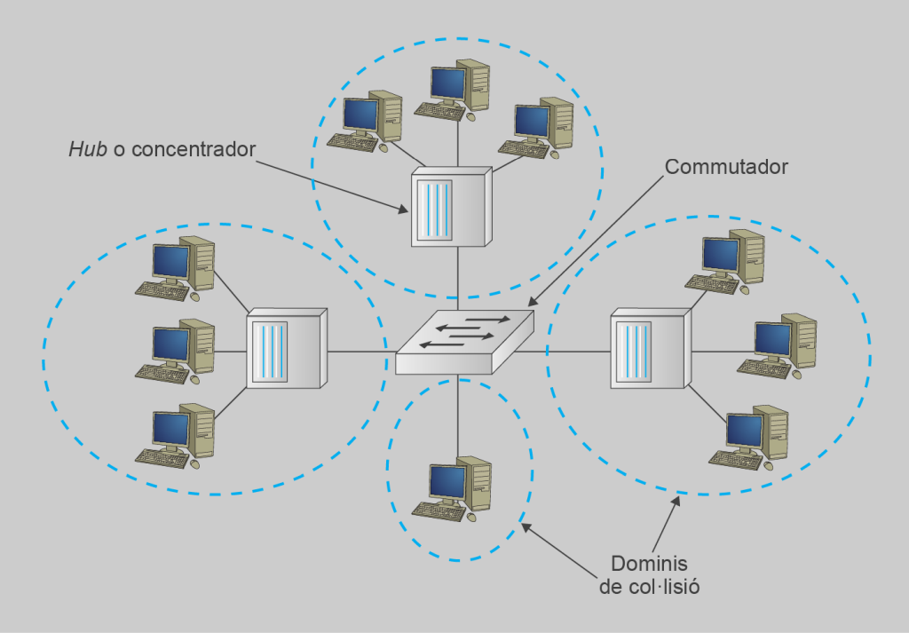 Les xarxes locals basades en commutadors es coneixen com a xarxes locals commutades (en anglès, switches LAN).