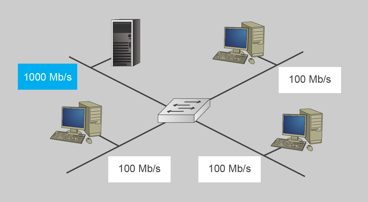 Cada host rep accés instantani a l’amplada de banda completa i no ha de competir per l’amplada de banda disponible amb altres hosts.