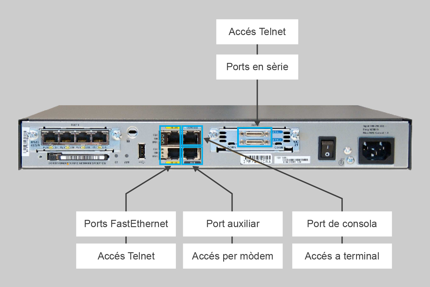 La primera ordre s’utilitza per començar la configuració de la primera línia de consola (en molts casos aquesta és l’única línia de consola del dispositiu). La segona ordre permet posar una contrasenya en la línia de consola. I la tercera ordre serveix per configurar el dispositiu perquè demani l’autenticació quan inicia la sessió.