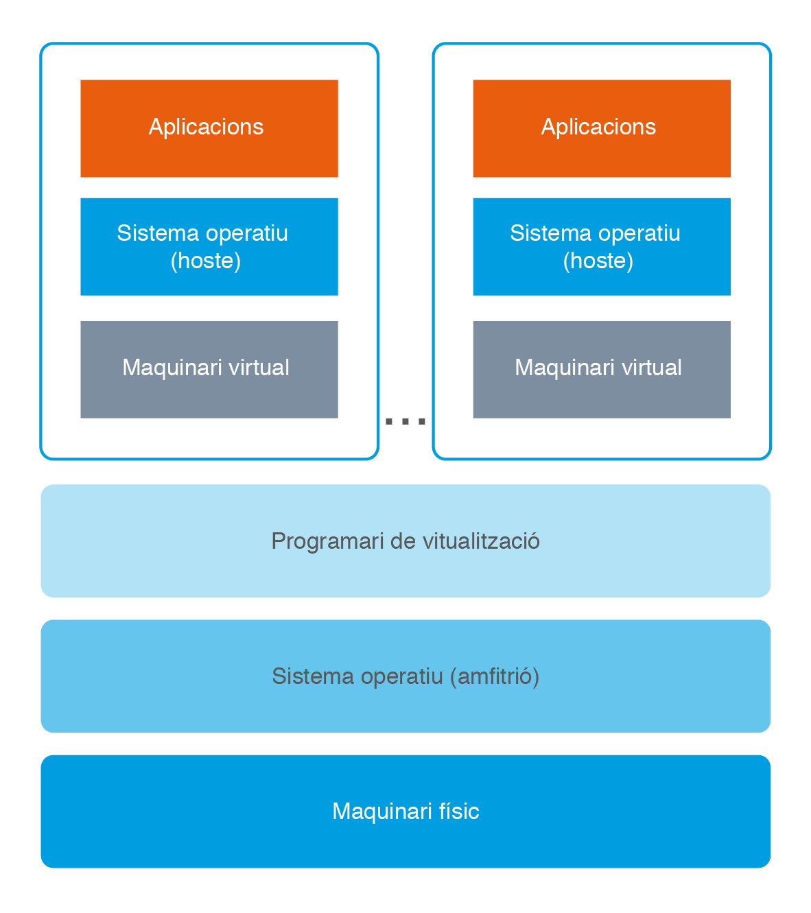 En la figura podem observar l’estructura d’un sistema de virtualització allotjada.