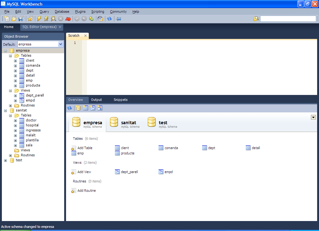 Recordem que en MySQL un SCHEMA és sinònim de DATABASE i que consisteix en una agrupació lògica d’objectes de base de dades (taules, vistes, procediments, etc.).