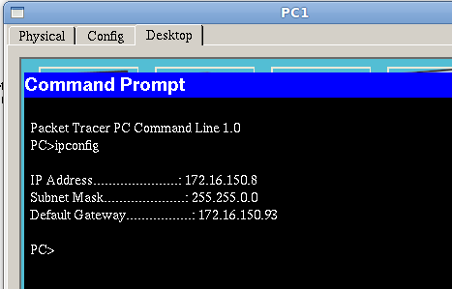 | PC4 | 10.0.0.8 | 255.0.0.0 | 10.0.0.1 |