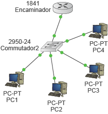 - La xarxa C, composta per un ordinador (PC5), un commutador (SW3) i un encaminador (R3).