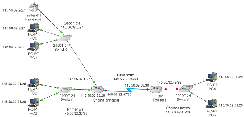 La primera subxarxa és la 193.240.32.0/24, i el rang d’adreces és de 193.240.32.0 a 193.240.32.255.
