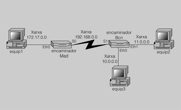 - 192.168.11.0 s’accedeix a través de 192.168.10.2 (interfície Serial0/1/0).