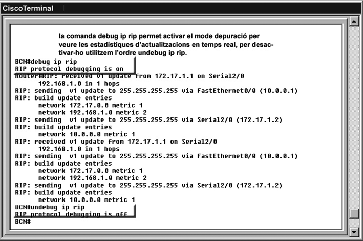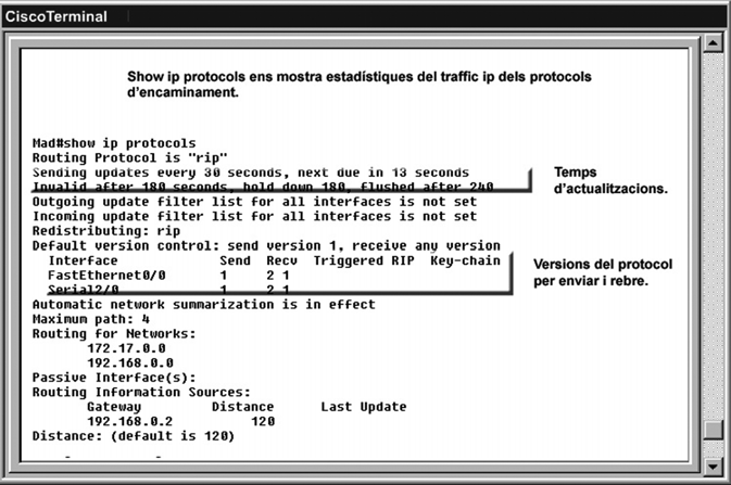 - RIP (routing information protocol, protocol d’informació d’encaminament). Fa servir el nombre de salts (hops en anglès) com a mètrica d’encaminament.