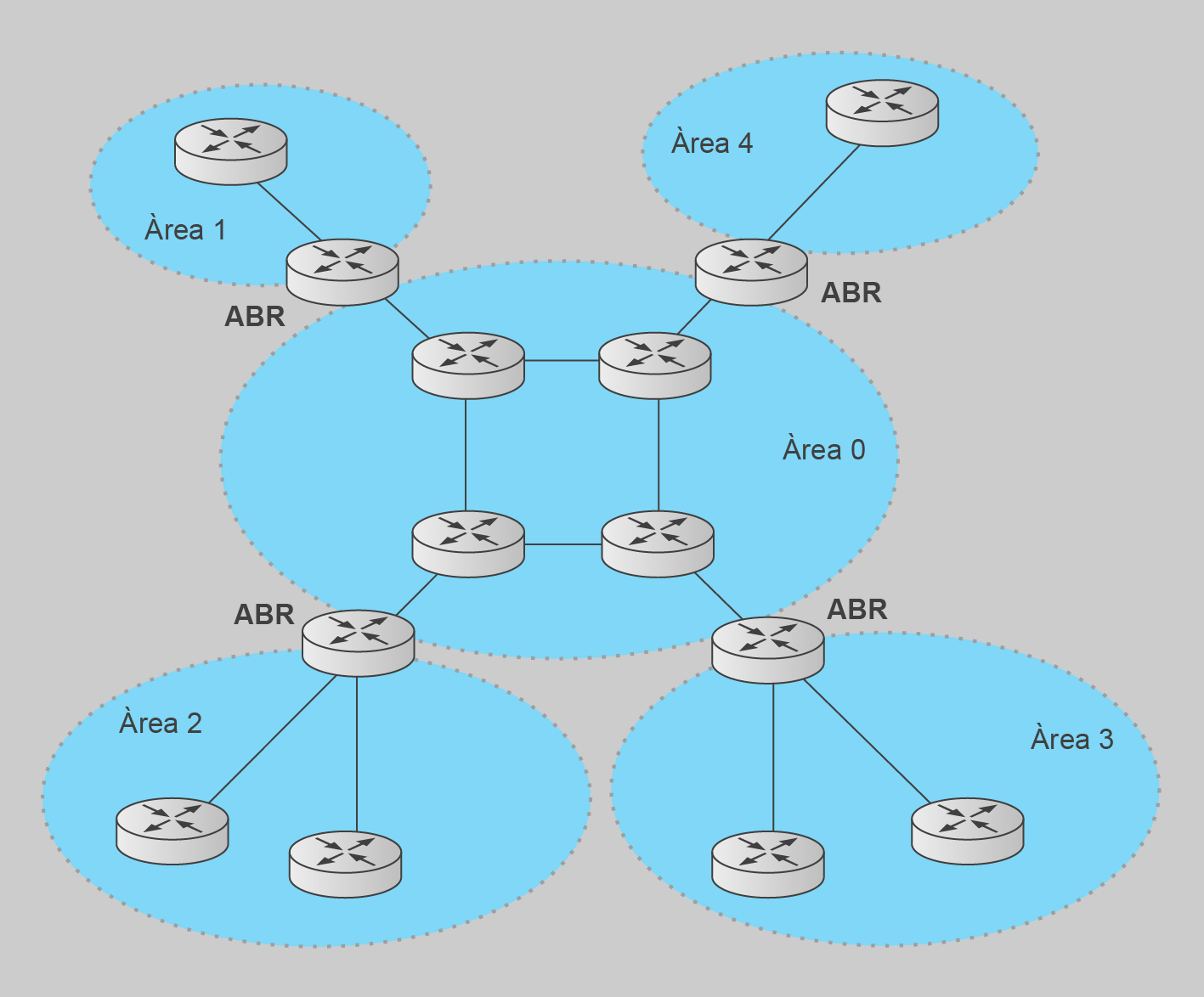 - L’àrea 0 (0.0.0.0) s’anomena backbone i connecta la resta d’àrees entre elles.