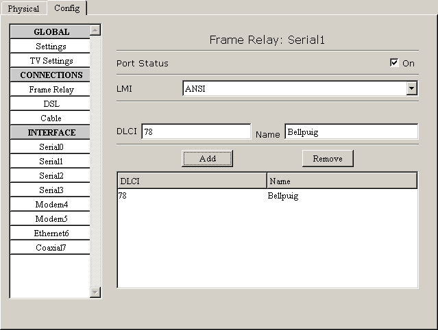 Girona(config)#interface Serial2/0 Girona(config-if)#ip address 10.0.1.1 255.0.0.0 Girona(config-if)#encapsulation frame-relay Girona(config-if)#frame-relay lmi-type ansi Girona(config-if)#no shutdown