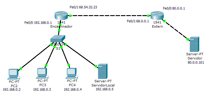 | Extern | FastEthernet0/0 | 80.0.0.1 | 255.0.0.0 |