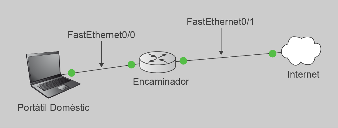 En el cas de la figura, per indicar a l’encaminador quina interfície és l’externa i quina la interna, cal executar les ordres següents: