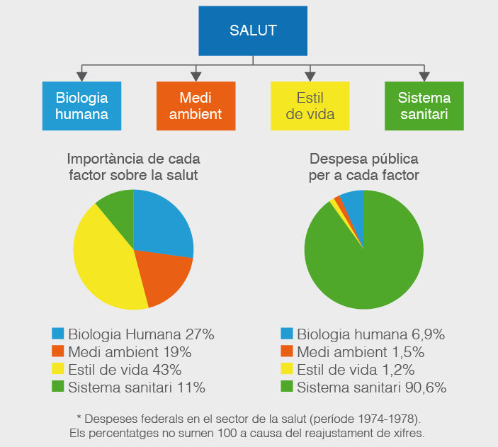 Tots aquests factors són modificables i, per aquest motiu, les accions de la salut pública han de dirigir-se cap a aquesta modificació. Hi són essencials la despesa i la inversió pública. En els estudis de Lalonde es va representar gràficament, mitjançant diagrama de sectors circulars, la importància o l’efecte relatiu que cada un dels determinants té sobre els nivells de salut pública (vegeu la figura).