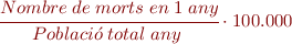 - Taxa de mortalitat general: és el nombre de persones que moren per qualsevol causa en una població determinada al llarg d’un any. Es pot expressar per cada 1.000 o per cada 100.000 habitants.