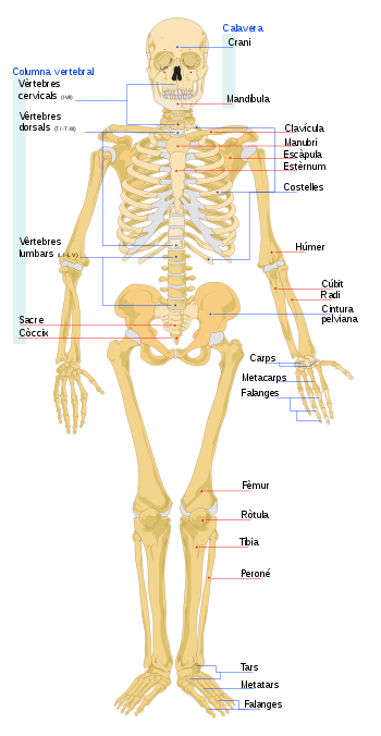 L’esquelet humà és l’esquelet propi dels éssers humans. L’adult és format per 206 ossos o més (vegeu la figura), alguns dels quals són fusionats (com ara els de la pelvis i els del crani), que es complementen amb els lligaments, els tendons i els músculs. Al voltant d’un 22% del pes dels ossos és aigua. L’os més gran del cos humà és el fèmur, i el més petit, l’estrep, a l’orella interna.