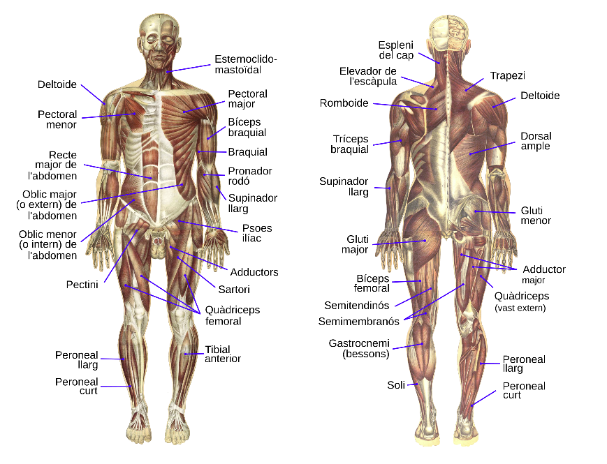 - El sistema muscular: format pels músculs i els tendons, els quals s’uneixen als ossos i, per tant, en contreure’s provoquen el moviment del cos.