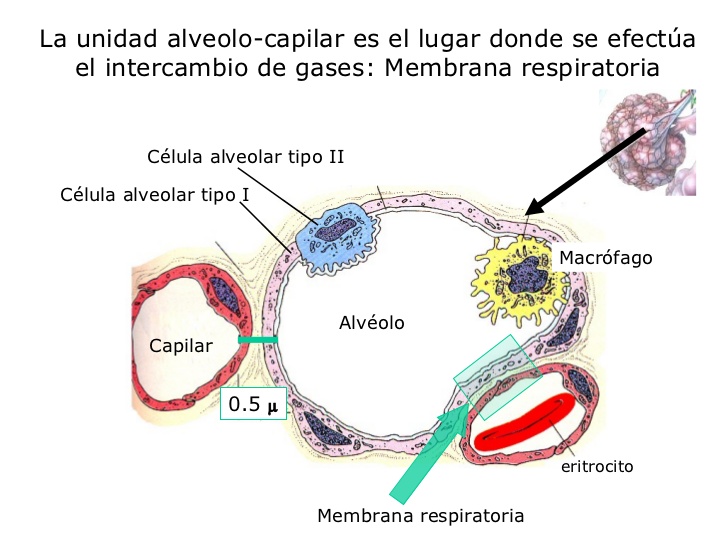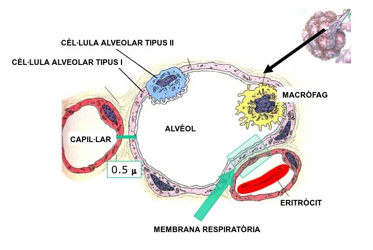 - L’intercanvi i el transport de gasos que es produeix entre els vasos capil·lars i l’interior de l’alvèol pulmonar.