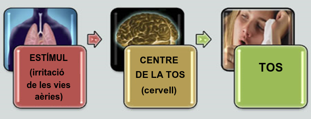 D’altra banda, la tos es pot iniciar bé de forma voluntària o com un mecanisme reflex. La seqüència de la tos comprèn (vegeu la figura):