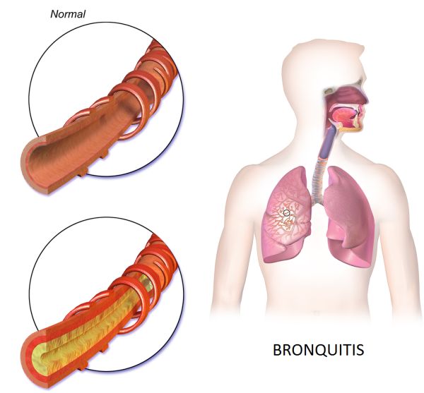 Els bronquis són l’entrada als pulmons. Es divideixen en dos, el dret i l’esquerre; el dret compta amb tres branques mentre que l’esquerre amb dos.