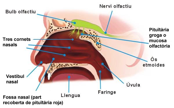 - Un tracte respiratori superior: inclou el nas, les cavitats nasals, els sins, la faringe i la part de la laringe per sobre dels plecs vocals.