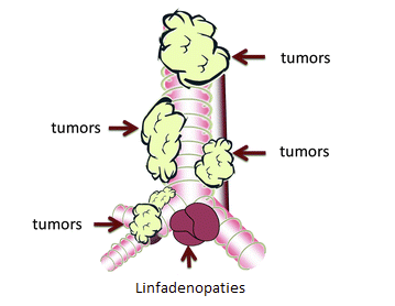 Entre les causes mecàniques figuren els aneurismes de l’aorta, el granuloma, neoplàsies pulmonars i tumors del mediastí (vegeu la figura); les lesions intramurals comprenen els carcinomes broncògens, adenomes bronquials, cossos estranys, afectació granulomatosa de l’interior dels bronquis i contracció dels músculs llisos de les vies respiratòries (asma bronquial).