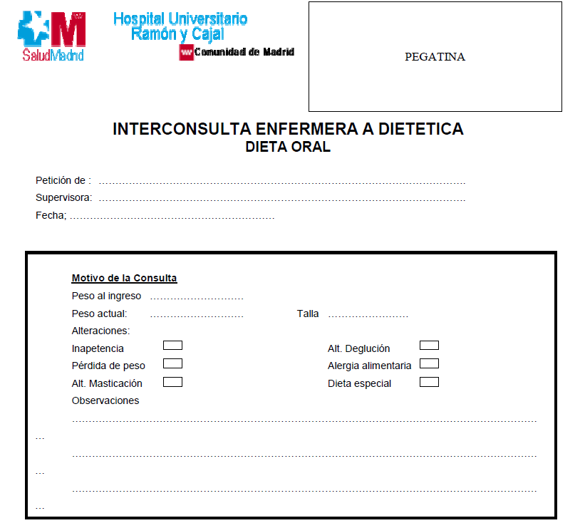 - Suplements dieta: s’han d’anotar els suplements dietètics que tingui el pacient.