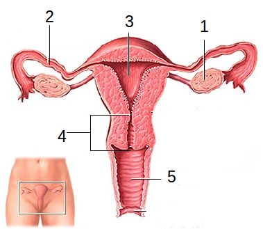 Observeu la següent imatge de l’aparell reproductor femení. Digueu-ne el nom i feu una breu descripció de cada una de les estructures marcades amb números.