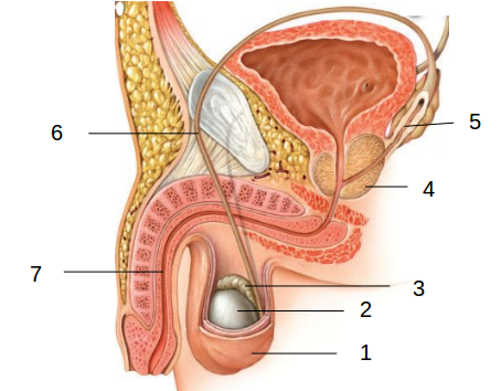 Observa la següent imatge de l’aparell reproductor masculí, digueu el nom i feu una breu descripció de cada una de les estructures marcades amb números.