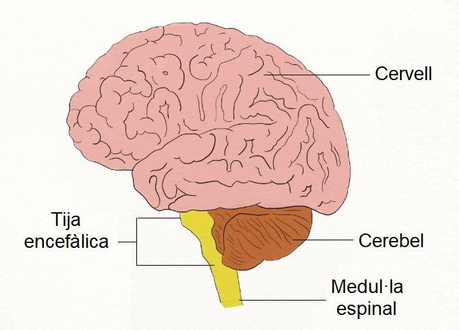 - El sistema nerviós central, que comprèn l’encèfal i la medul·la espinal.