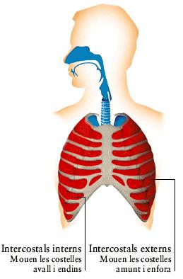 - Músculs del tronc, que són aquells que estan situats a l’abdomen, com els músculs respiratoris intercostals.