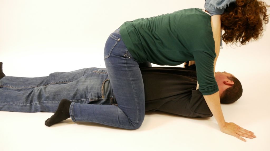 - Deixar que l’esquena de la víctima passi per sobre del rotllo fins a la meitat estirada i acabar d’estirar tot el llençol o manta.