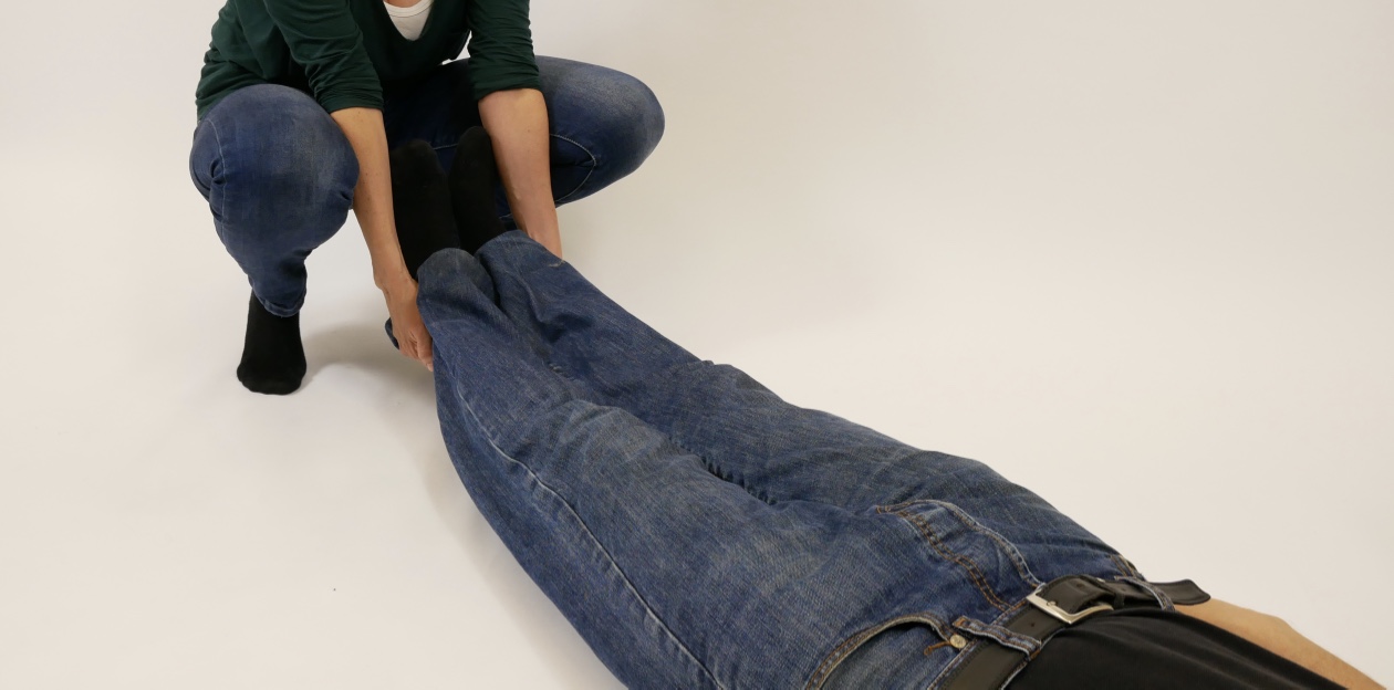 - Assegura’t que la víctima té les cames rectes; si no les té, posa-les-hi.