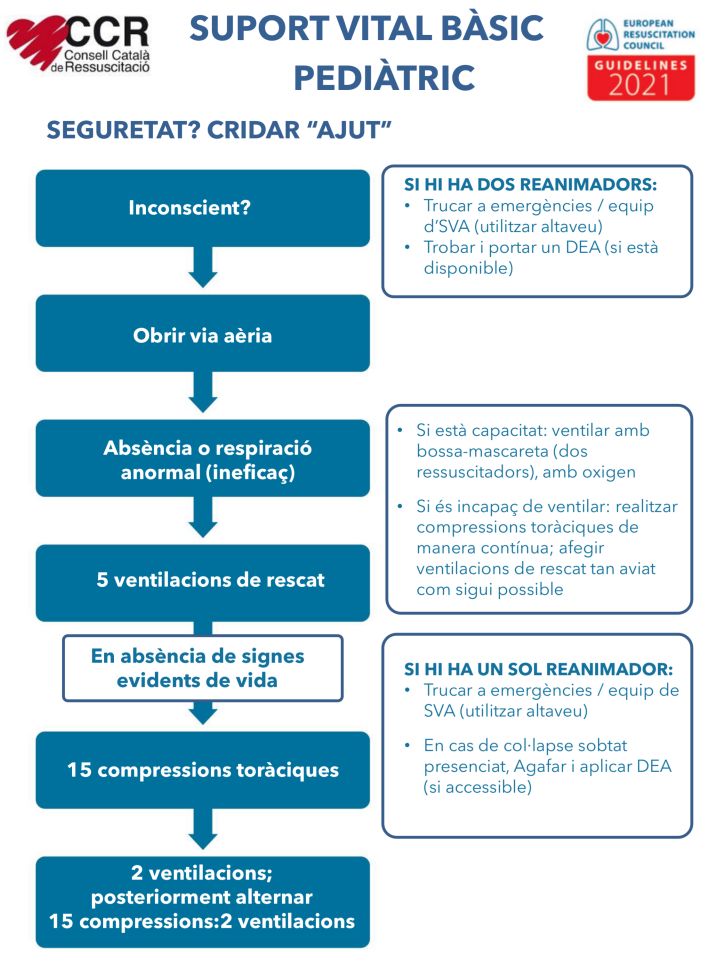 En aquestes publicacions queda clar que cada vegada l’algoritme d’actuació es va fent més senzill amb el propòsit que la ciutadania el recordi i sigui capaç d’actuar per salvar vides. En les guies ERC 2021 marca com a punts claus: