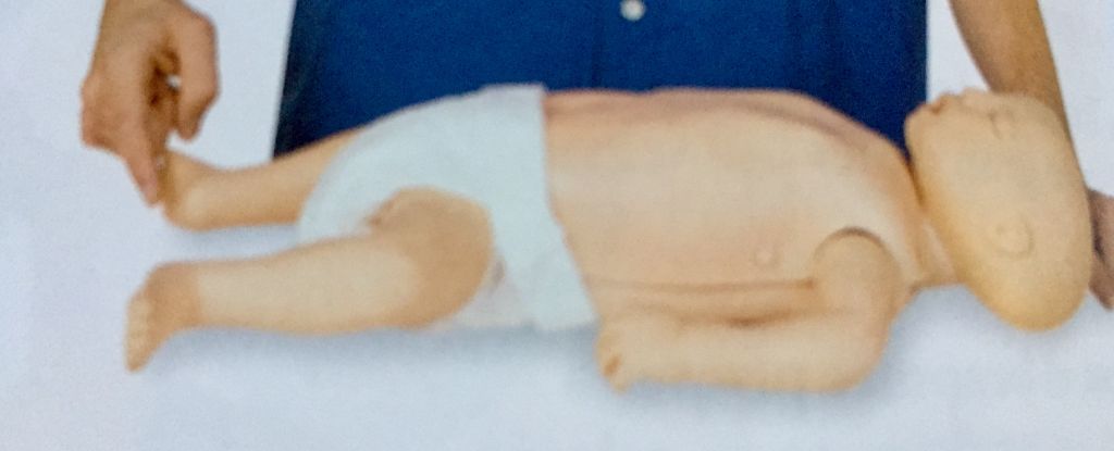 - Posar el lactant sobre una superfície plana a l’altura de la cintura del socorrista.