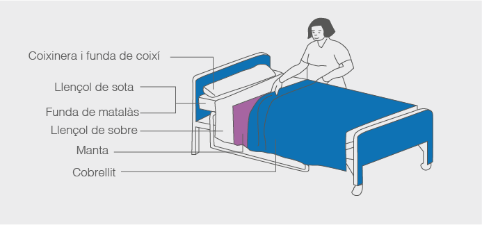- Preparar la roba de llit perfectament ordenada i portar-la al costat del llit.